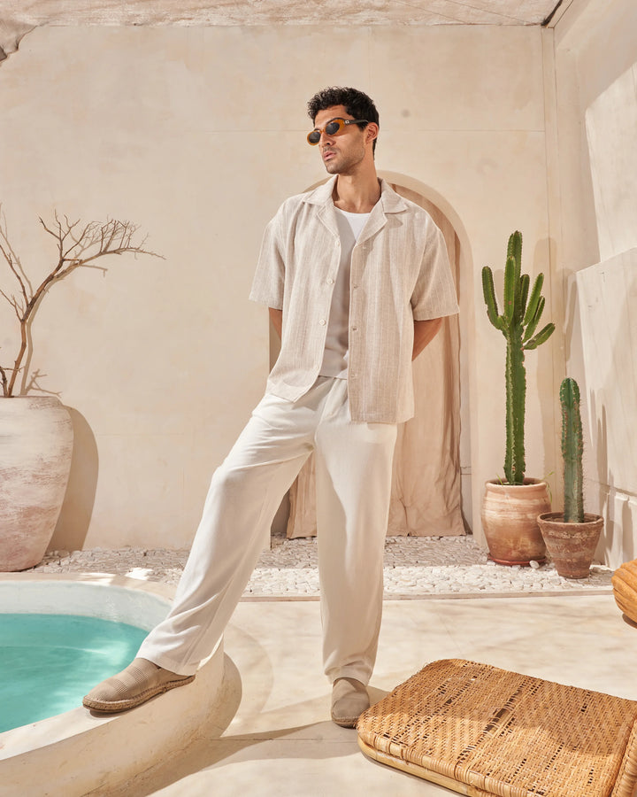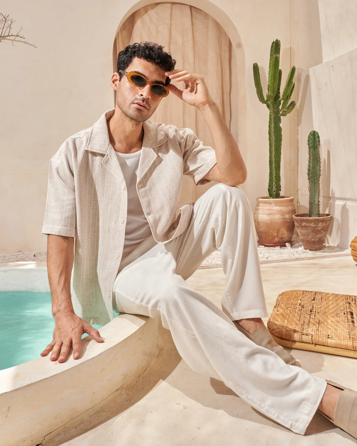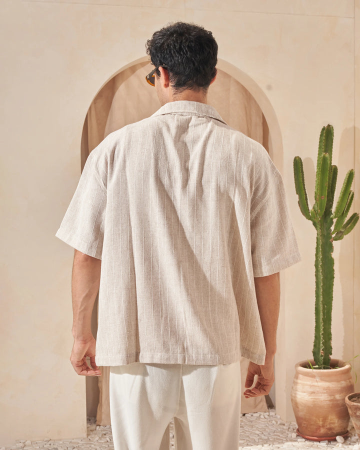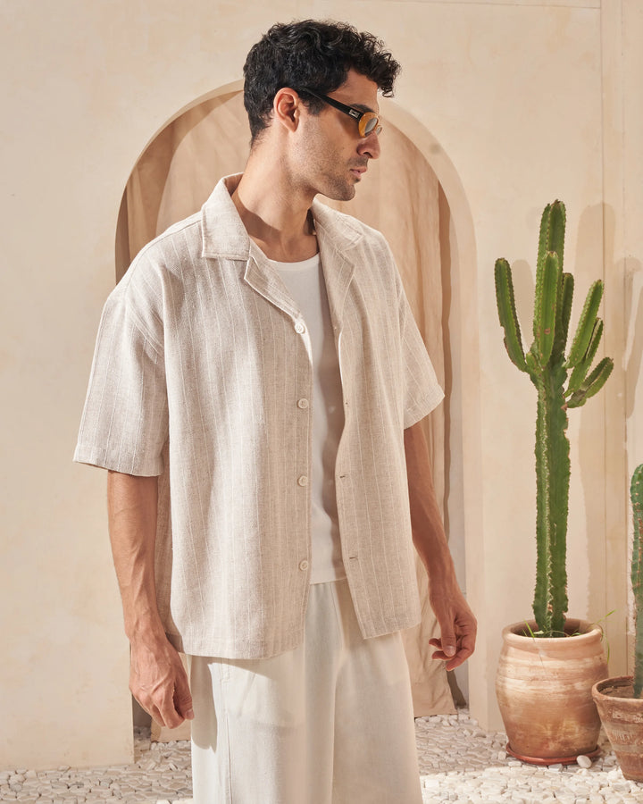 The Beige x White Striped Shirt is crafted from breathable linen for effortless comfort and style—perfect for warm days and timeless looks.