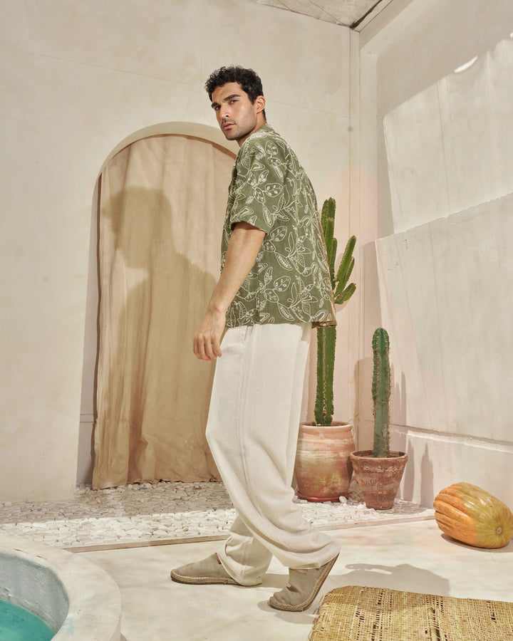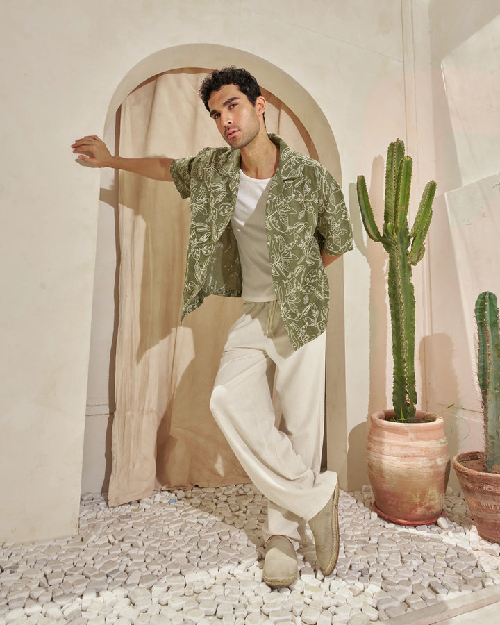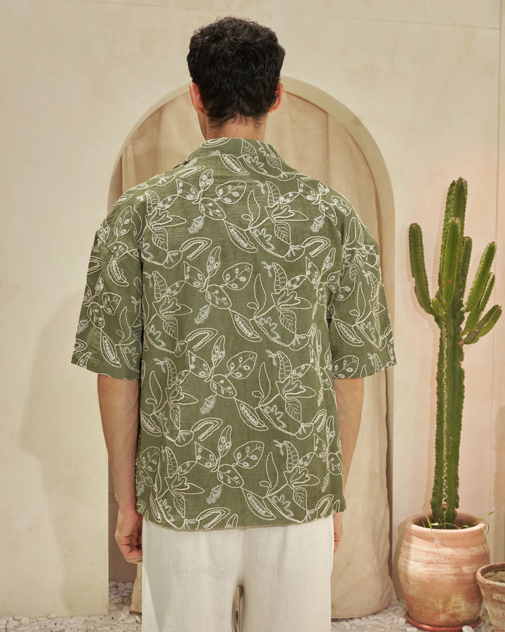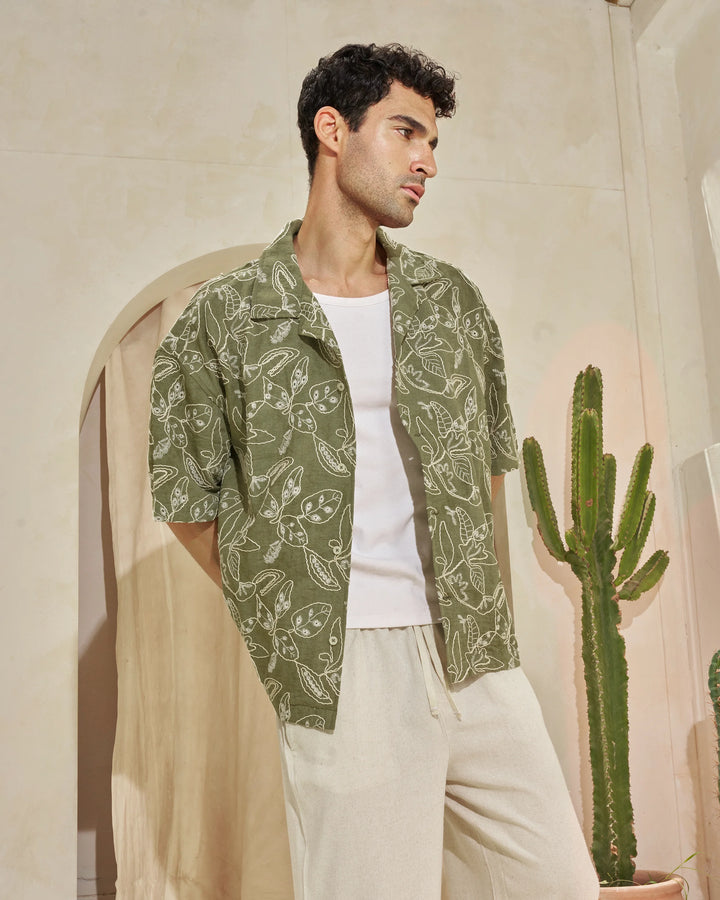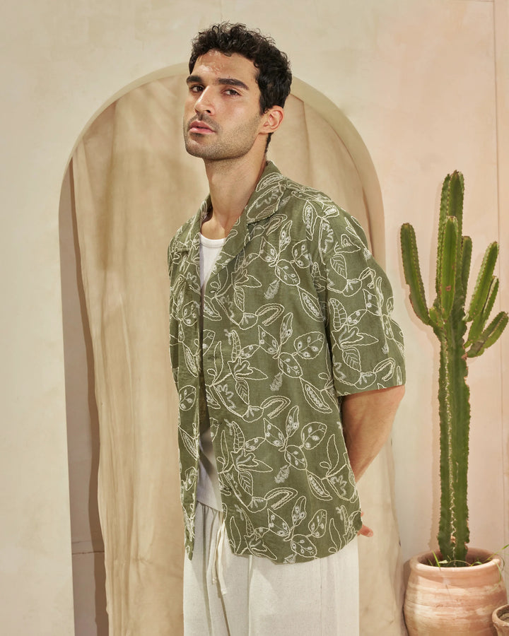 The Coast Embroidered Shirt in olive brings laid-back vibes with refined detail—lightweight, breathable, and made for summer days.
