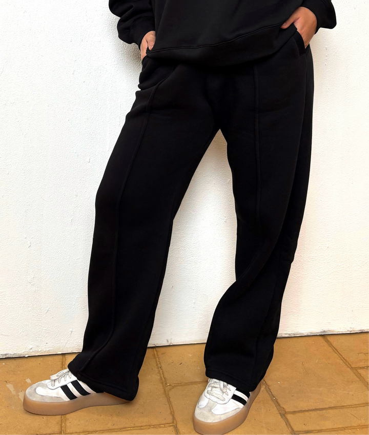 Designed for ultimate comfort and practicality, these black sweatpants feature two front pockets and one back pocket for all your essentials. Made from premium, soft-touch fabric, they offer warmth and durability.